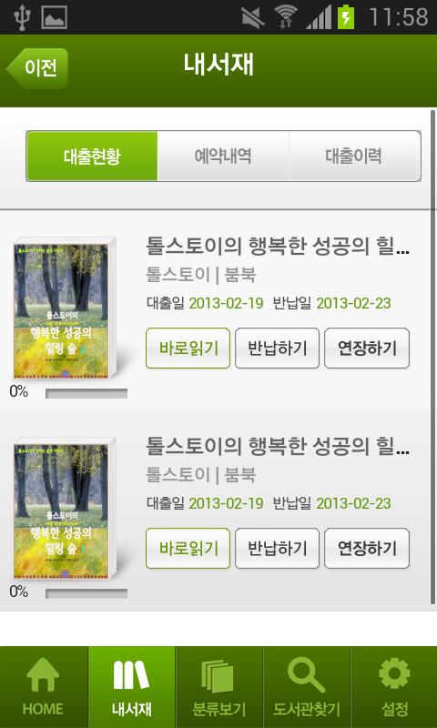 4. 도서관의 열람 정책에 따라서 기간이 지나도 추가 연장할 수 있으며, 책이 모두 대출 중일 때는 예약이 가능합니다.