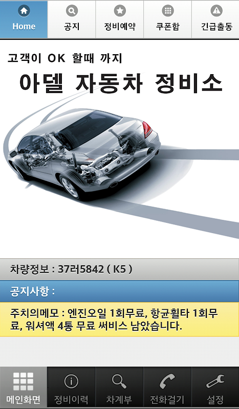 (주)아델정보에서 제공하는 오토케어 사용자만을 위한 어플리케이션 입니다.
