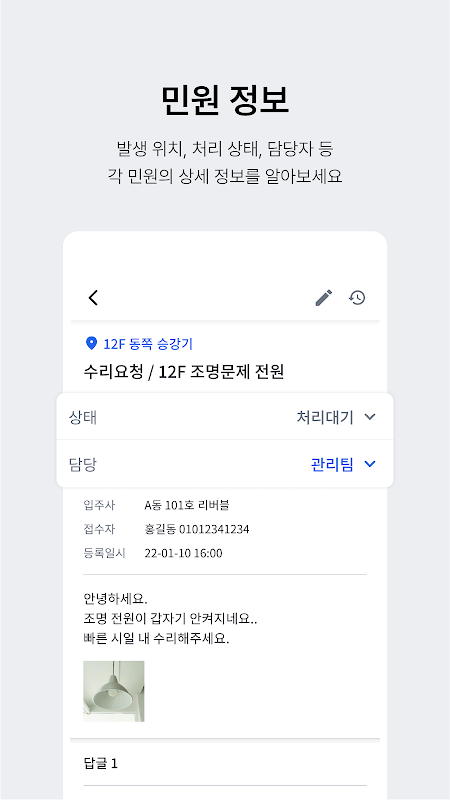- 現場實時查看並回复居民的請求和投訴。