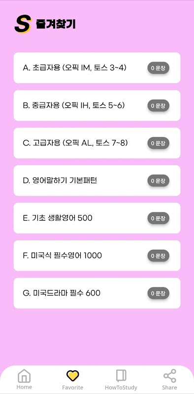 根據技能水平,分為情景、主題、章節,您可以在OPIc和TOEIC口語考試專用答題的6000個句子中只收藏您想要的句子,無限選擇、關注。一款專門為考生提供的應用程序,可以讓考生通過自動重複學習的方式來記憶英語句子。