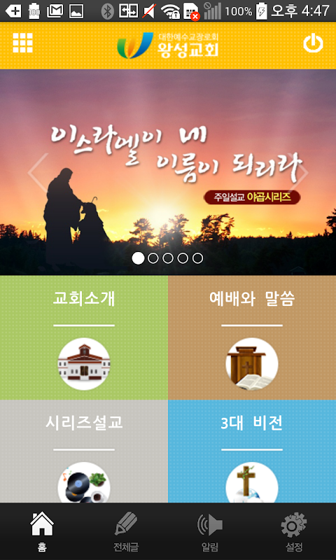 * 100% 연동형 앱 : 홈페이지에 등록된 내용, 게시물, 설교영상, 사진 등의 콘텐츠를 앱과 100% 연동하여 실시간으로 앱을 통해 확인할 수 있습니다.