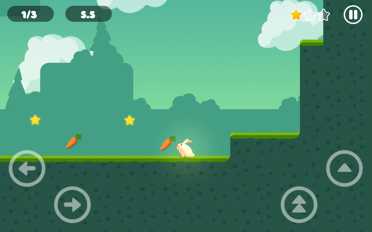 많은 스테이지가 있으며, 갈수록 성공 난이도는 높아집니다. 토끼가 장애물에 부딪혀서는 안되며, 2단 점프를 타이밍에 맞게 실행해야만 통과가 가능한 벽도 있습니다.