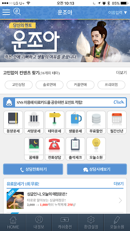 - 운조아는 무료 운세 또는 할인 운세 컨텐츠를 대폭 증가시켜 고객들의 부담을 줄였습니다.