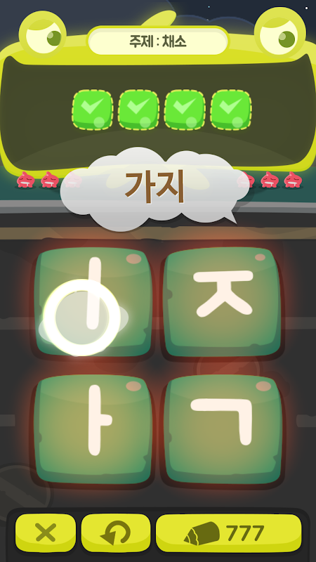 - 힌트 버튼을 이용하면 찾을 수 없는 단어를 찾는게 매우 큰 도움이 됩니다!