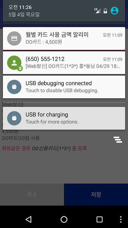 - 문자 수신 내용중 신용카드, 체크카드 내역만 관리 할수 있습니다.