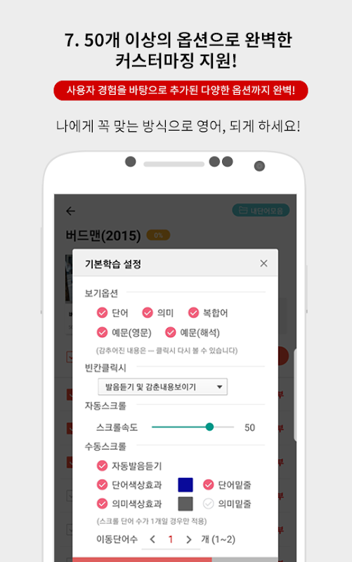 3만개 이상의 단어들과 50개 이상의 옵션, 매주 업데이트 되는 영어뉴스, TED, EBS 스타강사들의 기초영어회화까지!