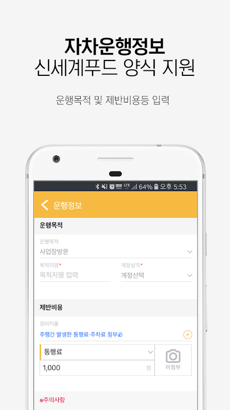 자차운행정보 - 신세계푸드 앱은 편리한 운행기록부 작성을 위해 개발 되었습니다.