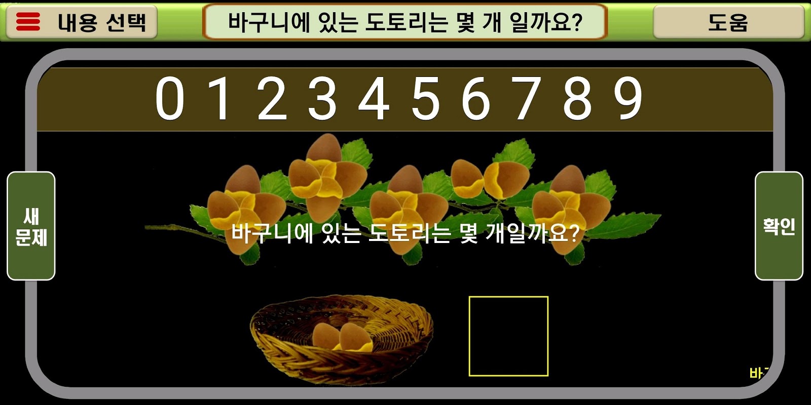 1.在操縱屏幕上顯示的橡子時學習數字的概念