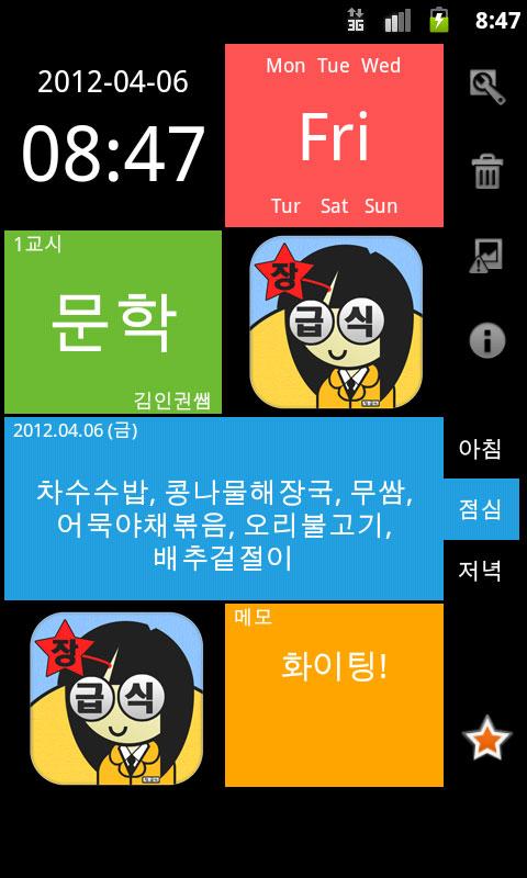 전국에서가장많은중학교급식정보확보! 급식,학사정보뿐아니라,시간표,디데이,메모서비스까지!
