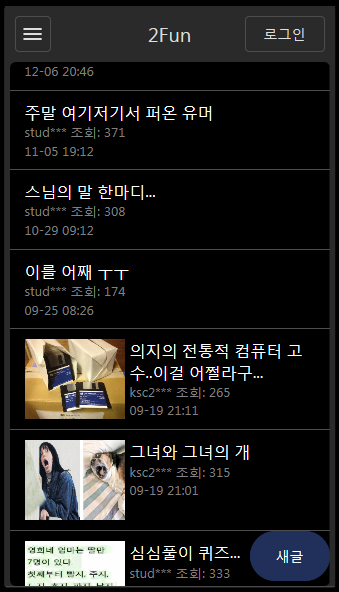 국내 유명 유머/커뮤니티/포털사이트의 신규 등록글을 모아 보다 쉽게 각 사이트의 글의 실제 내용은 링크를 제공하고 있습니다.