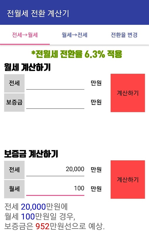 - 전세금 계산, 월세 계산, 보증금 계산 분리