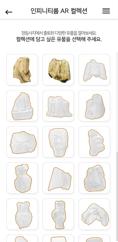 - 運行Jeongrimsaji Museum應用程序後,您可以通過識別展示櫃上的AR標記來查看有關文物的詳細信息並收集文物。