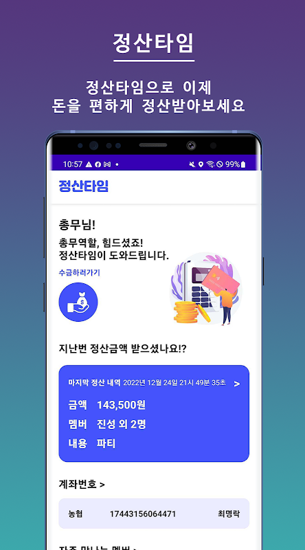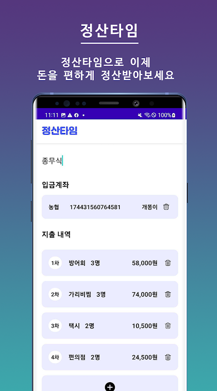 정산타임 - 더치페이 계산기 정산 총무 모임