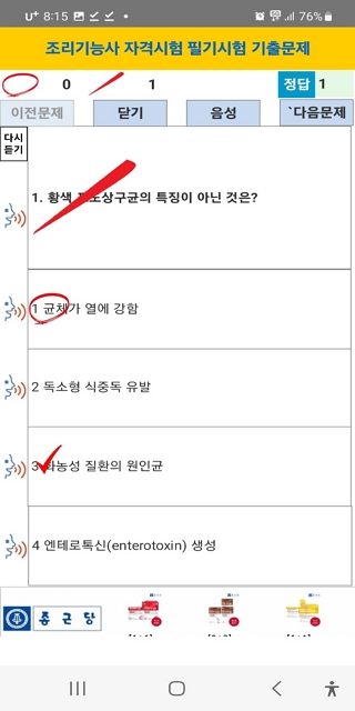 조리기능사(한식, 양식, 중식, 일식, 복어) 을성기출문제는 기출문제를 통하여 학습할 수 있도록 제작되었으며, 모든 기능은 무료로 이용할 수 있습니다. ★ 문제풀기 출제된 문항을 통해 출제 유형 및 내용을 학습할 수 있도록 하였습니다. 문제를 음성으로 읽어주어 학습에 도움이 됨니다, 문제를 풀면 즉시 답을 확인할 수 있습니다, ★ 틀린문제 틀린문제 문항들을 복습할 수 있도록 하였습니다. - 중요한 문항들을 반복학습 할 수 있습니다.