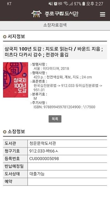 * 서비스내용: 도서검색, 모바일회원증, 도서관 안내, 전자책, 대출현황 및 이력 등