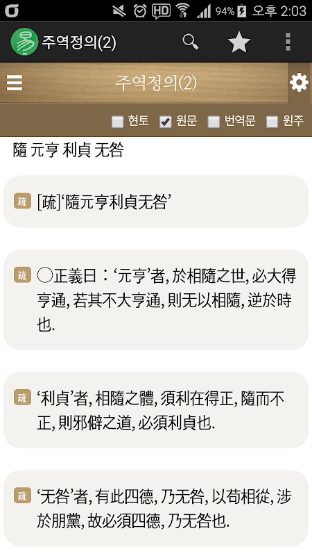 - 전통문화연구회 보급하고 있는 동양고전 13경 주소 앱 시리즈 중 하나인 주역정의(2권) 입니다.