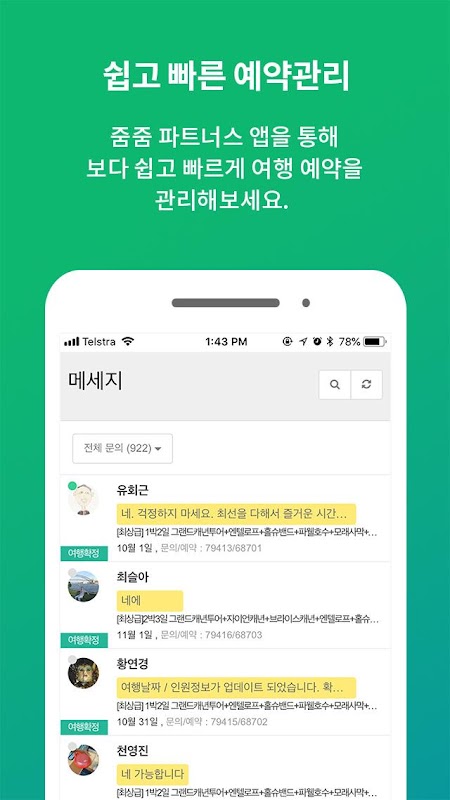 使用Zoom Partner應用程序,您可以實時與旅行者通信,確認預訂,並一目了然地查看預訂列表。