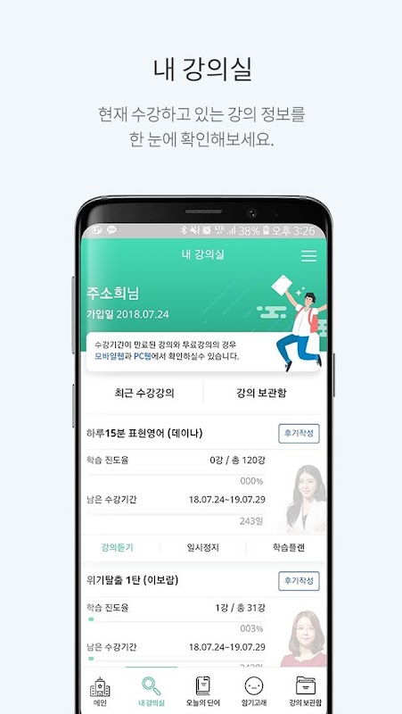 짠내영어 내 강의실 어플리케이션은 짠내영어의 모든 강의를 편리하게 수강하실 수 있습니다.
