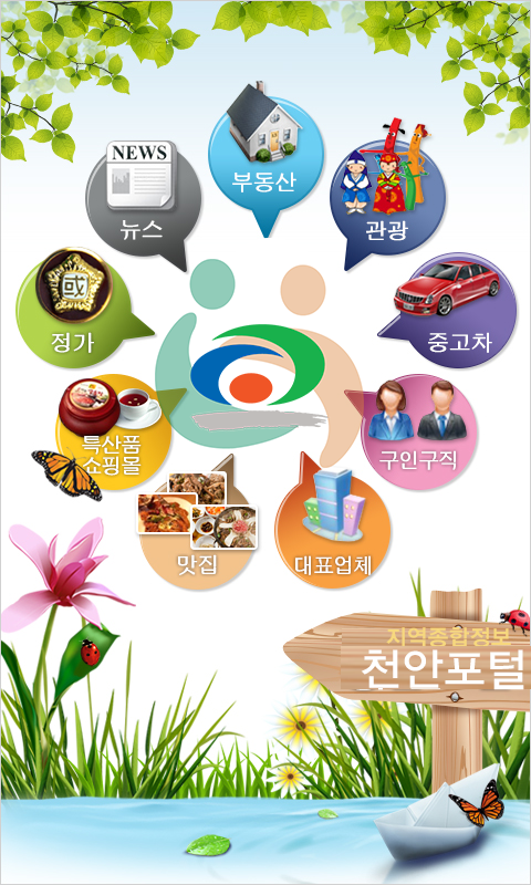 천안포털은 경기 천안시 지역에 관한 최신뉴스, 정치인, 부동산 매물 등록 및 검색, 천안시 기업체 구인구직 등록, 중고차 매매 서비스 및 벼룩시장, 천안시 가볼만한 곳, 관광 여행지, 맛집 등 유용한 생활정보를 제공하는 것을 목표로 하고 있습니다.