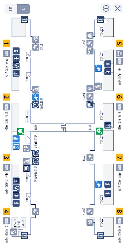 KORAIL 20個車站(江陵、慶州、光明、光州松亭、大田、東大邱、釜山、西大田、首爾、水原、順天、永登浦、五松、龍山、蔚山、益山、昌原中央、天安牙山、清涼裡、浦​​項)為使用者提供服務附有主要設施地圖