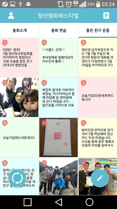총회와 관련된 본부 공지사항을 확인할 수 있으며, 전국에서 실시하고 있는 ‘좋은친구운동’을 교류하는 SNS기능을 중점으로 이용할 수 있습니다.