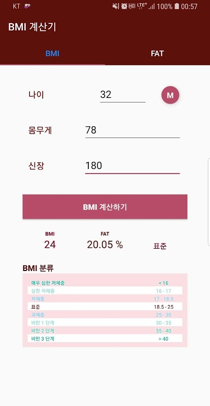 我可以計算體重(BMI)和FAT水平,並通過肥胖分類表檢查我當前的位置。