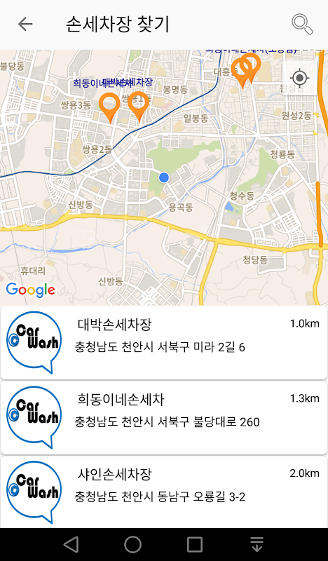 주변 20km이내에 위치한 손세차매장의 정보 공유