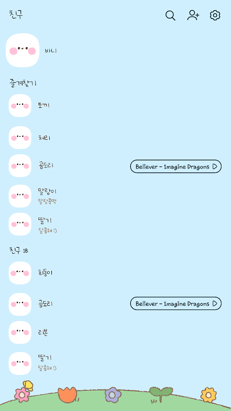 • 카카오톡 테마 - 꽃밭 위의 바니_베이비 블루 截圖 3