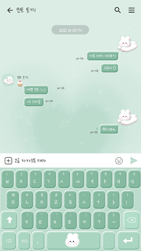 카카오톡 테마 - 민트 3D 토끼
