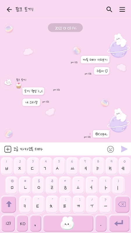 카카오톡 테마 - 핑크 3D 토끼 행성