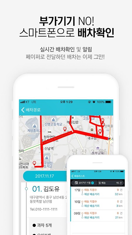 - 추가기기 없이 스마트폰만으로 배차,관제 가능