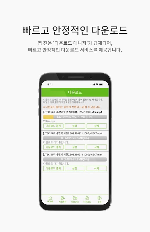 - 地面廣播(KBS、MBC、SBS)和有線廣播(tvN、JTBC、Mnet 等)的電視劇和娛樂節目即時更新。