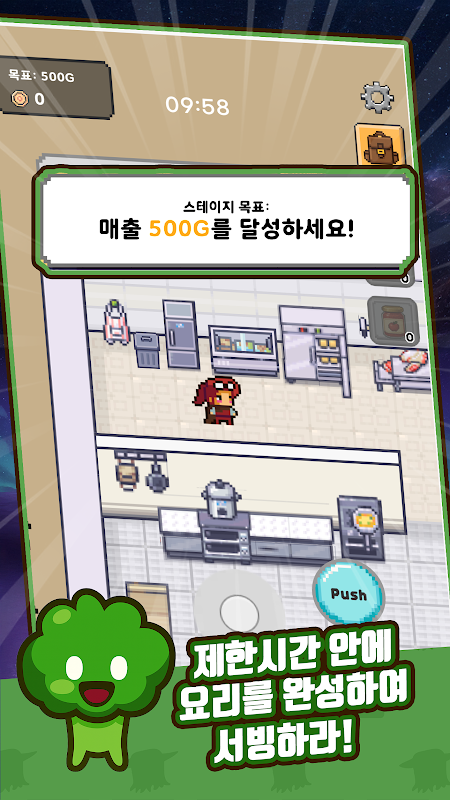 在限定時間內收集 → 烹飪 → 出售,以達成關卡銷售目標。精彩刺激的關卡,持續的決策。