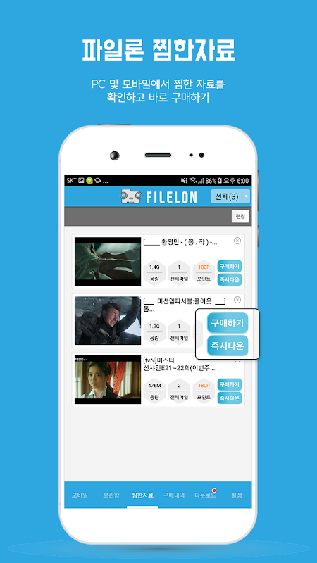PC 및 모바일에서 구매한 자료 / 다운로드가 완료되어 보관중인 자료를