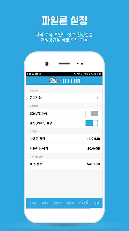나의 보유포인트 정보, 설정, 저장공간 등을 확인 할 수 있습니다.