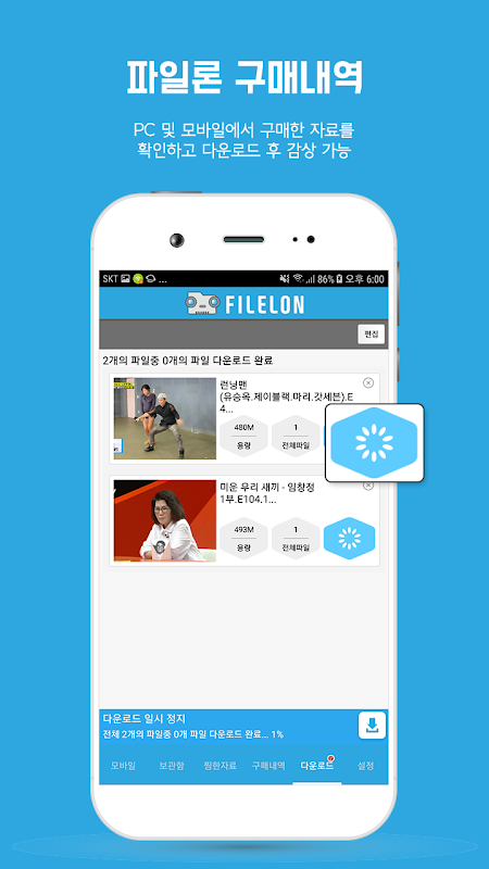 실시간으로 바로보기 및 다운로드 할 수 있는 파일론 전용 앱 입니다.