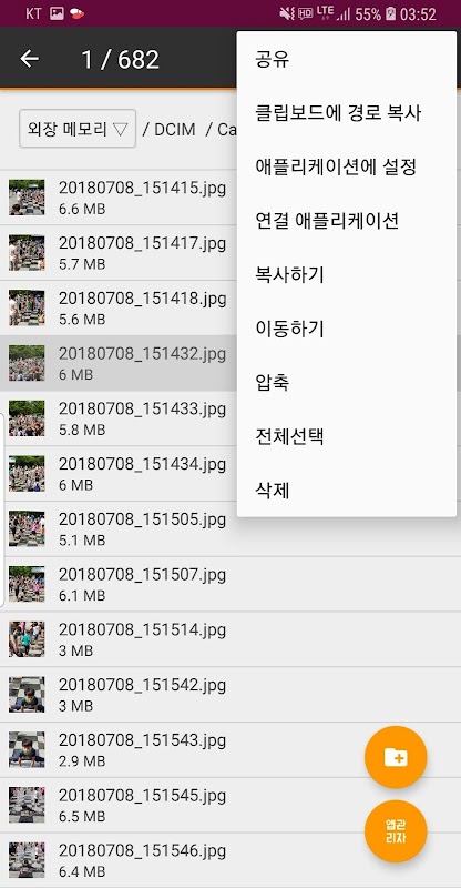파일 복사, 이동, 삭제, 압축, 공유 모두 가능한 파일 관리자 입니다.
