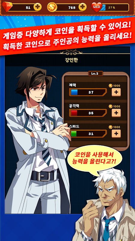 ▶ 탐정 주인공의 능력을 업그레이드시키면 퍼즐 게임을 더 쉽게 승리할 수 있어요!