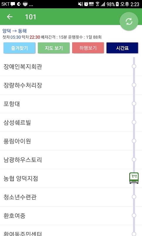 圍繞應用浦項的總線運輸和信息服務的餐廳