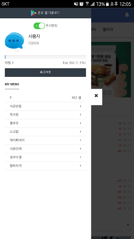 - 특가, 이벤트 진행 정보를 알림으로 받아 보실 수 있습니다.