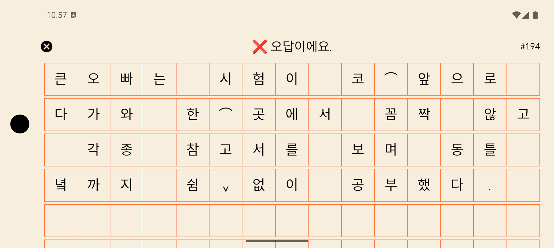 Hangul Spacing 應用程式是一款可讓您透過解決難度極高的 Hangul 間距問題來學習韓語拼字的應用程式。