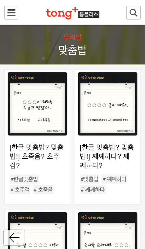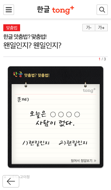 헷갈리는 한글 맞춤법을 퀴즈 카드로 풀어 한 눈에 쏙쏙 이해 됩니다.