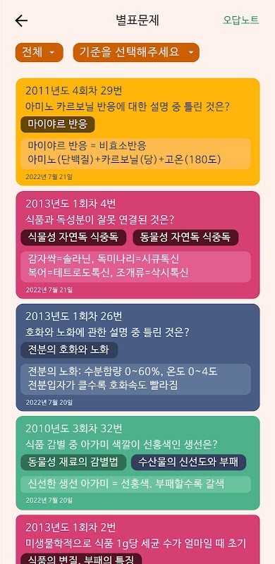3) 오답노트&메모장: 틀린 문제를 모아 오답노트를 풀어보고, 중요한 문제는 별표 후 메모와 함께 저장