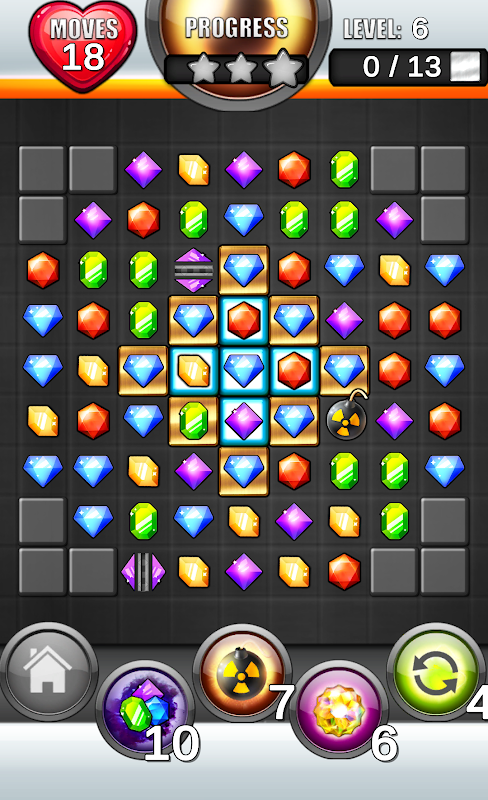 🔷 Destroy same color gem jewels and reach full 3 star ratings.