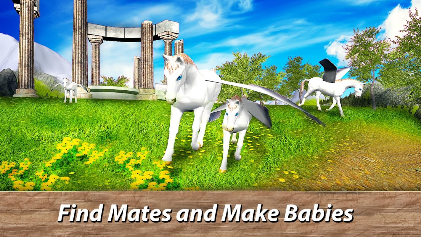 Pegasus needs food and water like any horse. Fighting other magic animal for survival in fantasy kingdom needs your flying pegasus herd to be strong. So do whatever helps survival of the herd. Dangerous magic of a fantasy kingdom will challenge your flying horse herd!