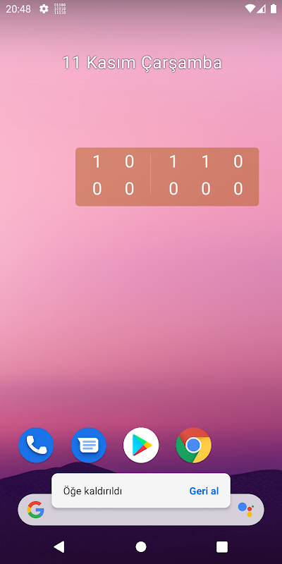Telefonlarınızda saati ikilik düzende gösteren bir widget, onluk düzende karşılıklarının ikilik düzende gösteren bir widget ,öğleden sonrası için bitleri farklı renklerde gösterebilirsiniz.