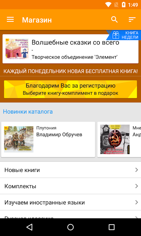 Приложение распространяется бесплатно и представляет собой проигрыватель со встроенным магазином аудиокниг.