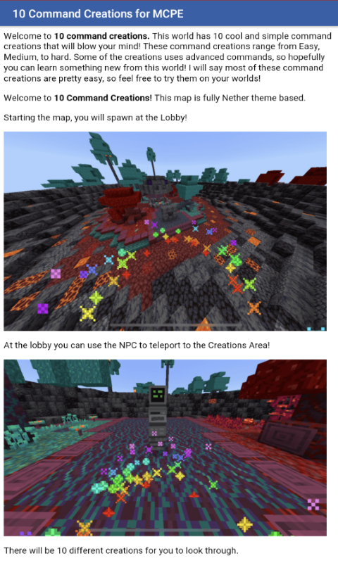 關於10 Command Creations for Minecraft PE