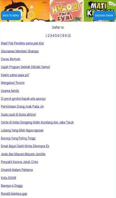 Kumpulan cerita lucu, humor dan tebakan kocak yang bisa menemani kita dikala suntuk dari pada bengong mending baca cerita humor yang bisa memancing tawa. Aplikasi offline ini bisa diunduh gratis disini.