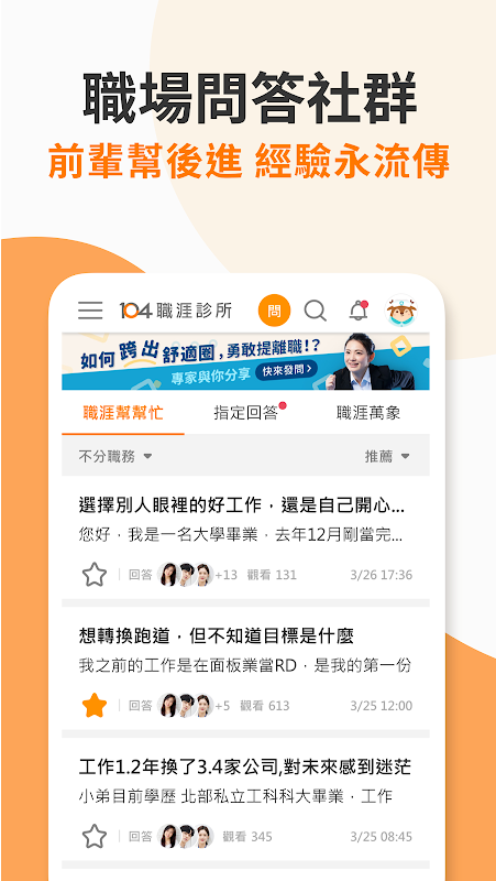 104 職涯診所|最專業的職場問答平台 2.5.0